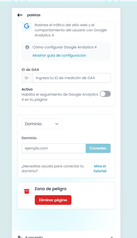 Entra a la sección "Configuración Avanzada" de tu cuenta en Marea Alcalina. Desde el panel de control, selecciona la opción "Conexión de Dominio" para comenzar el proceso de integración.
