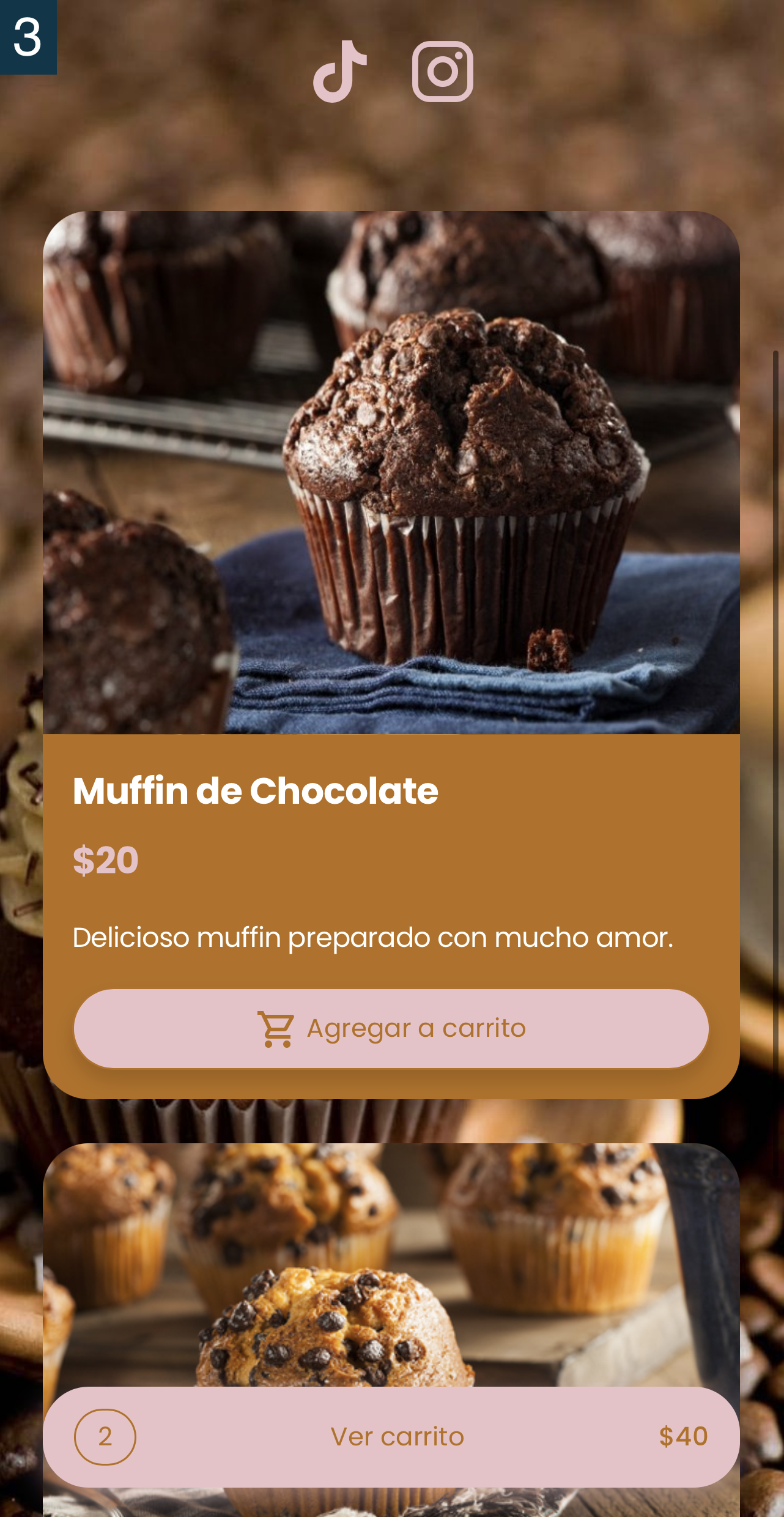 - Cuando un nuevo cliente visite nuestra página a través del link o código QR, se desplegarán cada uno de los productos/servicios, y estos contarán con un botón de "Agregar a carrito".