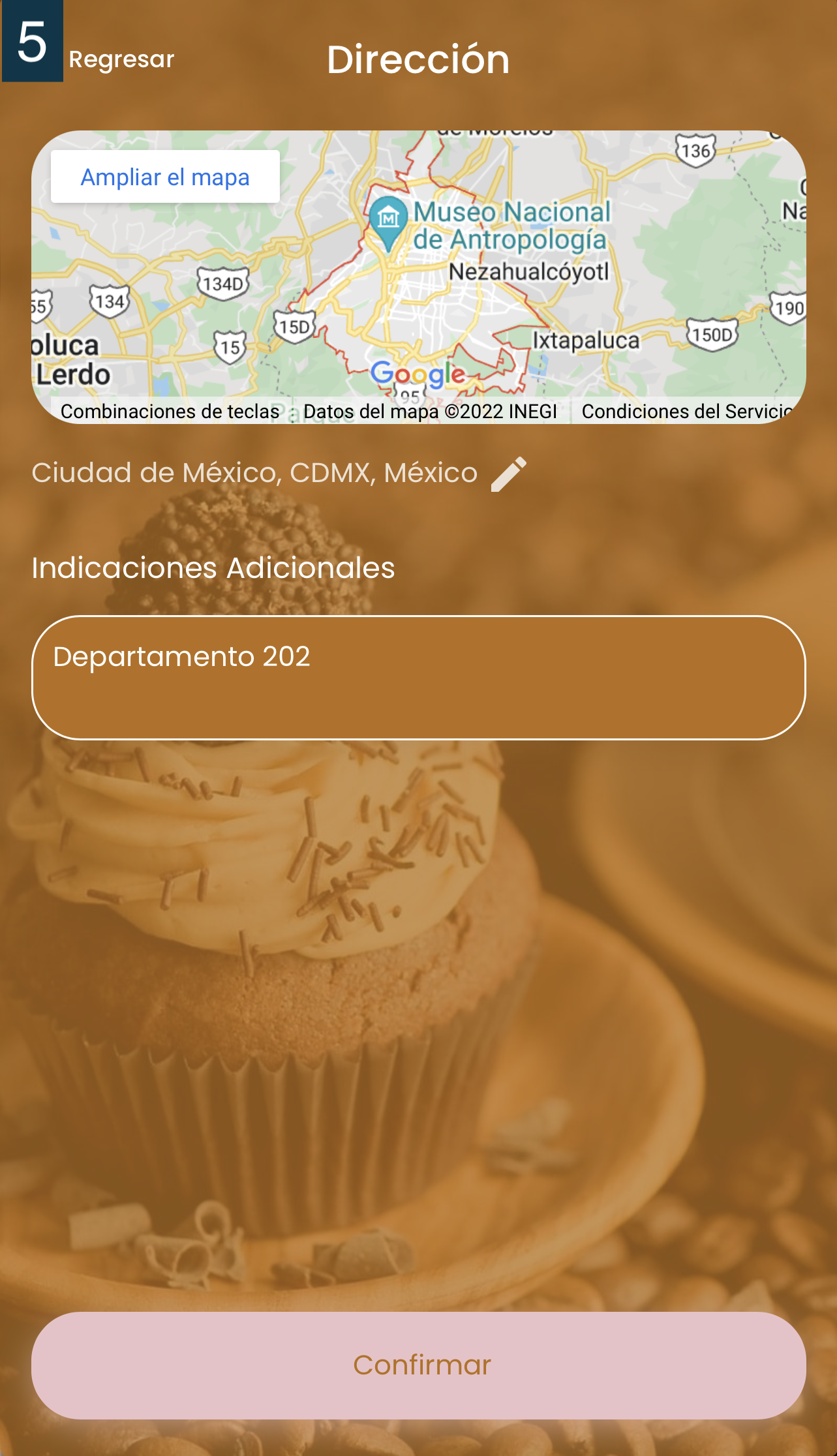 - Si activamos en configuración del carrito "Pedir ubicación", se le pedirá al cliente que elija una dirección, ya sea escribiéndola o usando su ubicación actual. También tendrá un recuadro para dar los detalles del número de casa, departamento. o cualquier otra instrucción necesaria para llegar al destino.