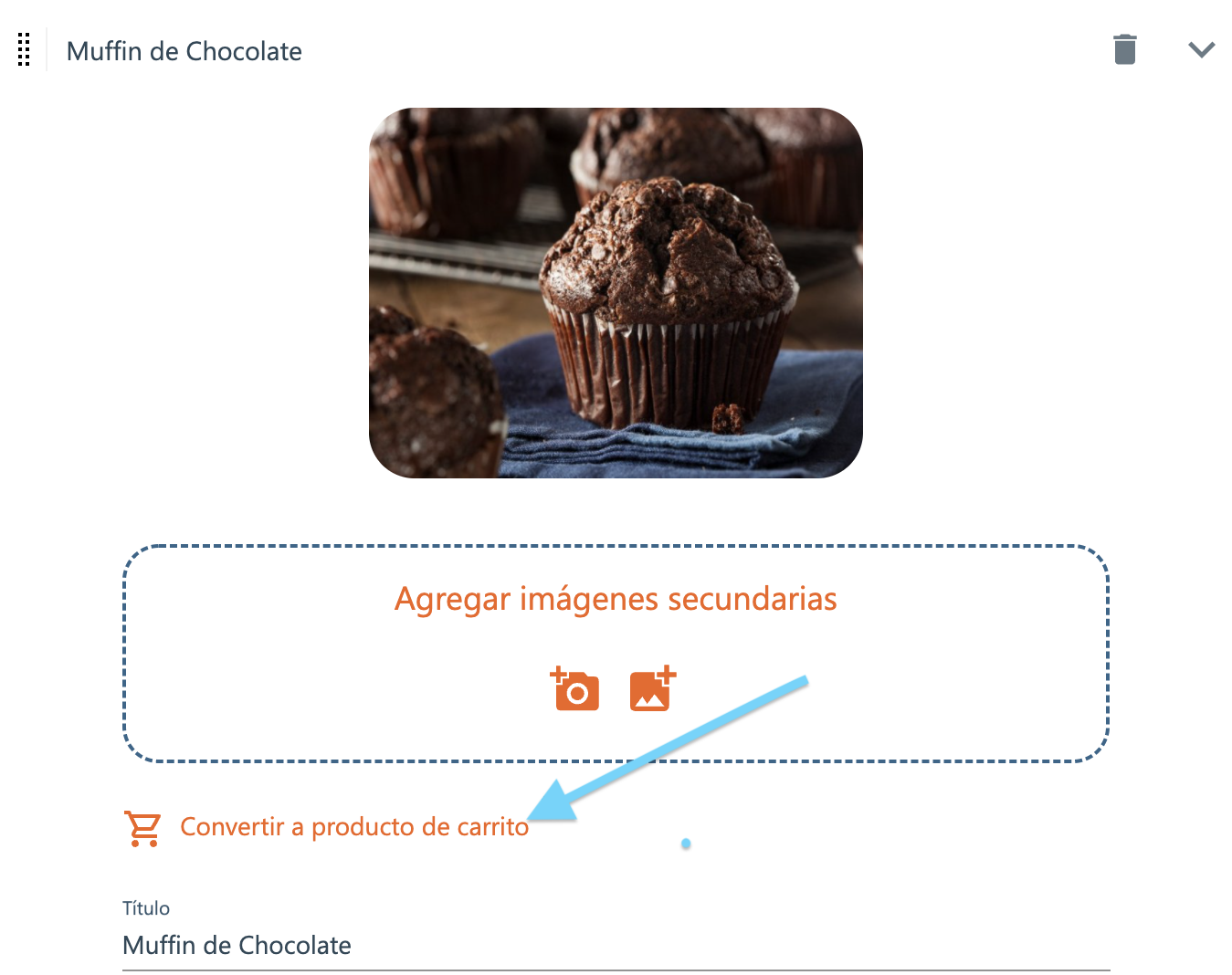 Para transformar éstas imágenes en productos que se puedan agregar a un carrito de compras, tenemos que dar clic en "Convertir a producto de carrito"