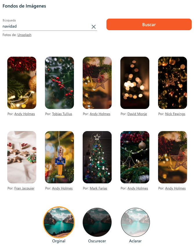 - Realiza una búsqueda de algún tema de tu interés y da clic en el botón de Buscar, Unsplash te mostrará varias fotografías a elegir, selecciona una o vuelve a dar clic en el mismo botón de Buscar para ver más opciones.