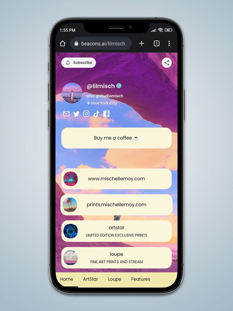Beacons es una plataforma todo en uno para creadores, que ofrece todas las herramientas necesarias para construir un enlace personalizado en la bio, aumentar una base de fans y ganar más dinero.